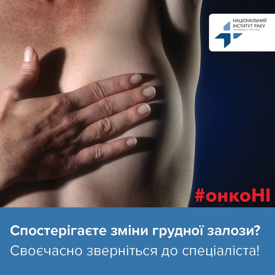 РАК ГРУДЕЙ Рак молочної залози є найбільш поширеним видом раку серед жінок усього світу. На ранніх стадіях рак грудей може не викликати болю чи інших симптомів. Водночас, виявлення цього виду раку саме на ранній стадії є запорукою успішного лікування. Кожна жінка після 20 років має 1 раз на місяць (на 10-12 день менструального циклу) проводити самоогляди, а також 1 раз на рік проходити огляд у мамолога. Терміново зверніться до мамолога (онколога), якщо виявили: - ущільнення або новоутворення у грудях; - деформації форми та/або контурів грудей; - втягнення шкіри грудей; - кров’янисті виділення з соска, ерозії та виразки на соску; - збільшення підпахвових та/або надключичних лімфатичних вузлів. Основні методи діагностики раку молочної залози: - огляд хірурга онколога; - УЗД молочних залоз та регіонарних лімфатичних вузлів (для жінок до 40 років); - мамографія (для жінок після 40 років); - мамодуктоендоскопія (при патологічних виділеннях з соска). У випадку виявлення новоутворення проводять біопсію (токноголкову або трепано-біопсію). Якщо є докази пухлинного процесу призначають обов’язкові (рентгенографія легень, УЗД черевної порожнин) або додаткові (комп’ютерна томографія, магніторезонансна томографія, радіоізотопне дослідження тощо) методи обстеження. Для подальшого планування лікування виконують лабораторні дослідження (загальний аналіз крові, сечі, група крові тощо). РАК ЛЕГЕНЬ Рак легень є другим із найбільш розповсюджених видів раку серед українців. Найчастіше рак легень провокують куріння, погана екологія, хронічні захворювання легенів та спадковість. Зверніться до лікаря, якщо у вас: - тривалий сухий кашель,задишка та болі у грудній клітці, - кровохаркання, - поганий апетит і різка втрата ваги. Своєчасна консультація фахівця та виконання його рекомендацій – надійний шлях до одужання, оскільки на початкових стадіях захворювання добре піддається лікуванню. РАК ПРОСТАТИ За даними Всесвітньої організації охорони здоров'я, кожен 6-й чоловік протягом свого життя хворіє однією з форм раку простати. Вчасне виявлення та правильне лікування призводить до перемоги над хворобою. Рак простати найчастіше протікає безсимптомно та повільно. В процесі розвитку хвороби з’являються такі симптоми: - розлади сечовипускання, - кров у сечі або спермі, - біль в спині, стегні або тазі, - болісна еякуляція. Профілактичний огляд лікаря-уролога та аналіз крові на простат-спецефічний антиген (ПСА) допоможуть визначити можливу загрозу чоловічому здоров’ю. Ризик розвитку раку простати збільшується з віком. Цей вид раку може виникнути, якщо хтось із близьких родичів (батько, брат) мав це захворювання. Також він поширений серед чоловіків, які ведуть нездоровий спосіб життя. БАЗАЛЬНО-КЛІТИННИЙ РАК ШКІРИ Базально-клітинний рак шкіри (БКРШ) є пухлиною, що характеризується повільним розростанням і вкрай малою властивістю до метастазування. У зв’язку зі збільшення ультрафіолетового навантаження на організм, кількість випадків цього виду раку зростає. Захистіть себе від ультрафіолету. Зверніться до лікаря, якщо помітили на шкірі обличчя, шиї або руках: - червону пляму; - розростання рожевого кольору з кірками у центрі; - блискучий вузол перламутрового кольору; - відкриту виразку або ерозію, яка не заживає протягом 4-ох тижнів; - ділянку з блискучою поверхнею та неч